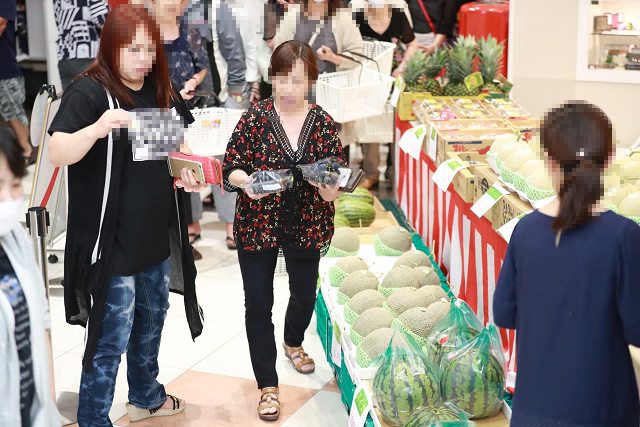 開始直前には黒山の人だかりが築かれ、あっという間に山盛り特盛、モッリモリのフルーツの森が忽然と消えてしまうミステリアスな光景が広がった!