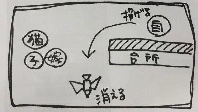 (2)猫がどこかに隠した(でも猫はソファの上から動いていない、スタンド?)