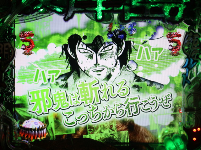 『牙狼』と決定的に違うのが、原作漫画を使用した演出がある点。これの位置付けがわかりにくい。「少なくとも2Dキャラよりはアツいだろうけど、3DCGと実写映像と原作漫画はどれが一番アツいの?」と、初見だとまず疑問符がつきます。