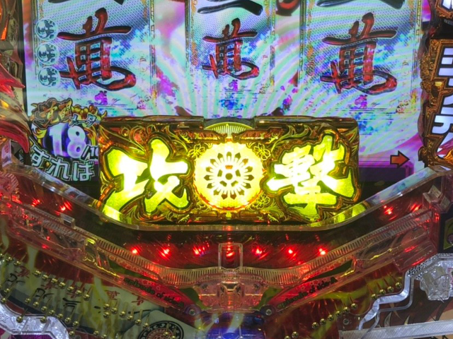 液晶下部の役物でどちらのターンかが表示され、バトルリーチ発展時に「攻撃」なら勝利(大当り)or流局(ハズレ)、「激闘」なら敗北(麻雀戦闘モード終了)or流局となります。