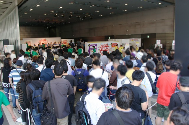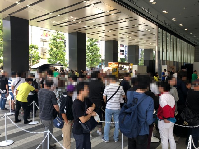 最新の機種がいち早く試打できるということもあり、開場1時間前からパチスロファンが待機。