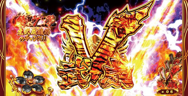 EX虎武威なら「継続率管理(90%~99%)」の上位ATになります。もちろん「天武の極」以外でも武威ストック抽選は行われているので、AT中は如何に武威ストックを獲得、もしくはEX虎武威で継続させることができるかが重要となります(EX虎武威終了後も武威ストックが残っていればATは継続)。