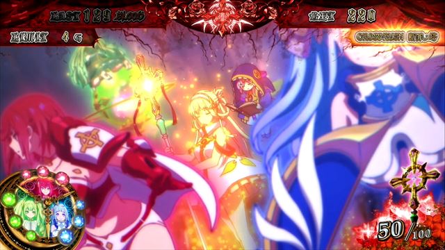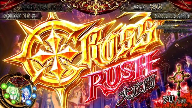 「ブラッドパーティー(BP)」は小役のヒキによって展開が変化する自力要素の強いCZとなっていて、最終的に敵を撃破できればAT当選。消化中は参戦スピリットの対応役が成立するとチャンスで、十字架揃い成立時は勝利確定となります。CZ成功期待度は約40%! 範囲攻撃発生時は敵全員にダメージを与えられるので、己のヒキを駆使して展開を好転させることが勝利への近道となりますぞ。