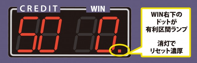 WIN右下のドットが有利区間ランプとなっていて、消灯時はリセット or 設定変更が濃厚となる。