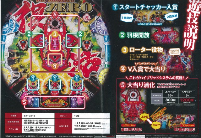 そして待望の大当たりはV入賞後にランプで告知、アタッカーなら大当たり比率85%、出玉数約800個、下アタッカーは大当たり比率15%最大出玉1200個しかも9R固定の大当たり。