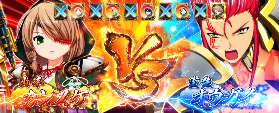 AT直撃当選パターンは「前兆(軍議ステージ)→連続演出成功→AT当選」の流れになるので、AT終了後50G程度で発生するAT引き戻しを除き、直撃を確認したらその後の展開に期待していいかもしれません。