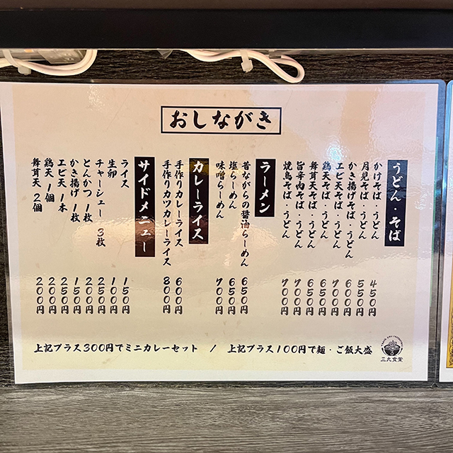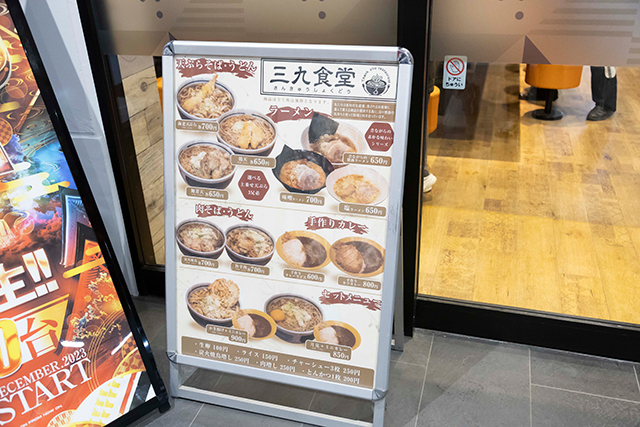 うどん・そば・ラーメン・カレーなどを食べられる三九食堂!