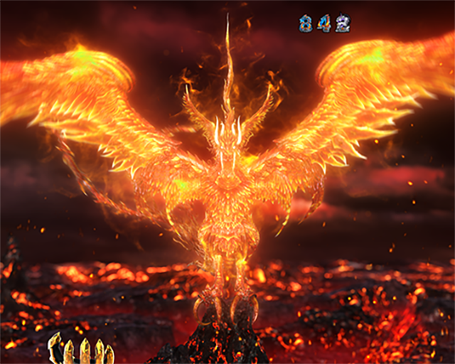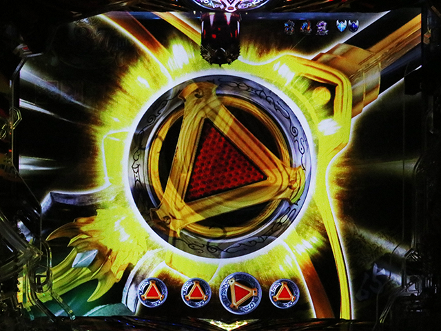 煽りから聖獣パネルが完成するとチャンス。ショートバトルに発展します。その後、ボタンPUSHで融合巨大ホラーを撃破できれば大当り。全画面牙狼剣なら期待大!