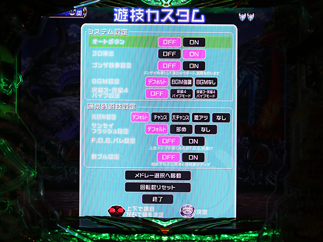右打ち中は3種類のおすすめカスタマイズから選択できるほか、オリジナルカスタマイズで細かく設定することも可能です。