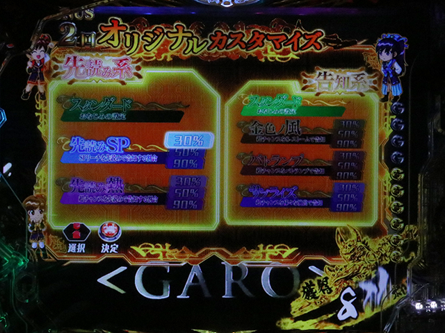 「ON」にすると、剣振予告の出現率&信頼度がアップ! 他のカスタマイズと組み合わせると面白そうですね。