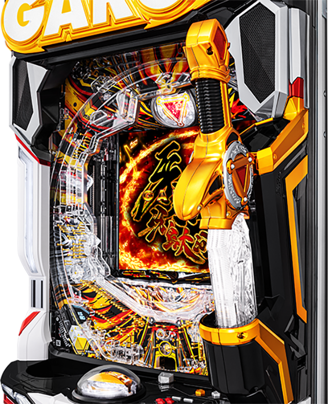 4つのリールに「GARO」の文字が揃うと、ボタンもしくは牙狼剣のデバイス演出へ発展。牙狼剣ならチャンス。G.F.O.G.が完成すれば大当り!