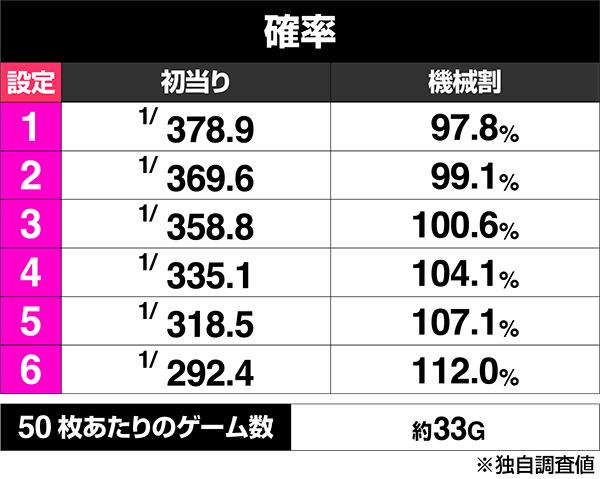 なお、機械割については設定6で112.0%。REGに偏るなどの振り分け負けなどがなければ最高設定はそれなりの期待値があると言えよう。
