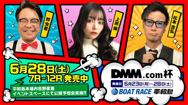 6月28日(土)ボートレース平和島本場で、平和島ボートレース芸人とDMM特別ゲストによる公開予想会を実施!注目のゲストは上田操、鈴虫君、松本吉弘!