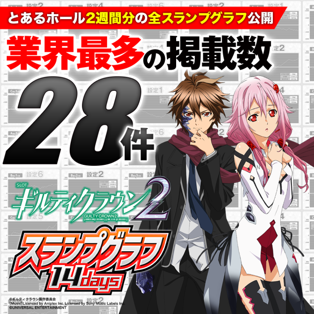 とあるホールから入手した人気機種のスランプグラフを設定付きで掲載&考察していく当企画! 今回は『スマスロ ギルティクラン2』の2週間分のスランプグラフをいただきました。
