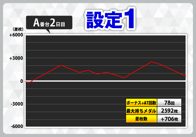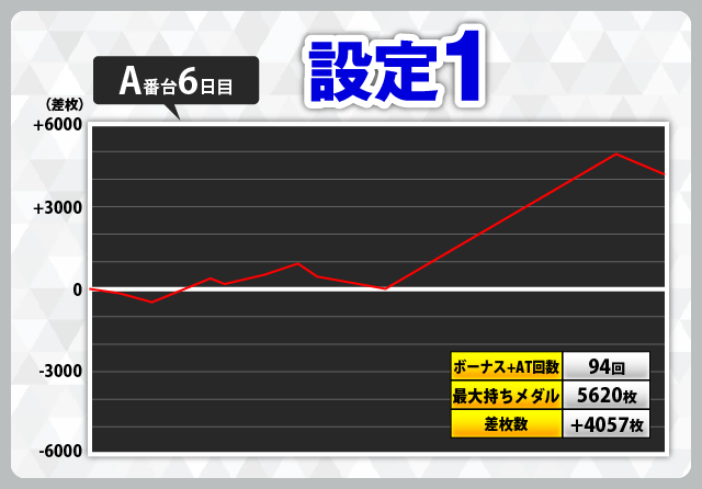 | 1 | +5585枚(設定6) | −3810枚(設定3) |