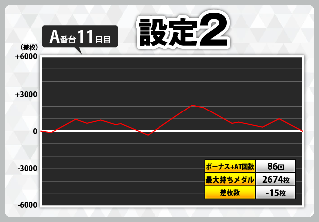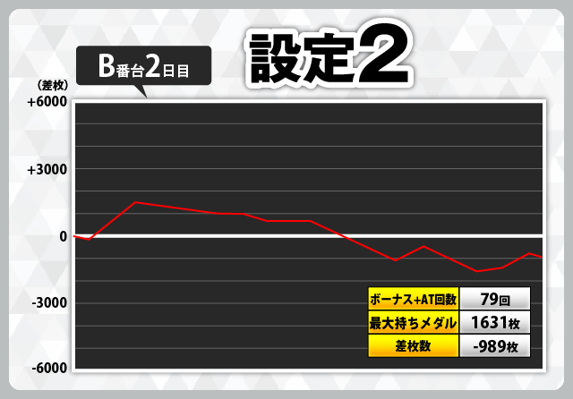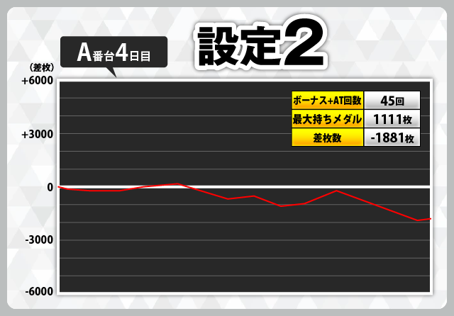 | 2 | +4057枚(設定1) | −3724枚(設定1) |
