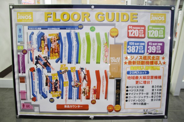パチンコは240台(4円:120台、1円:120台)と、総設置台数は666台。