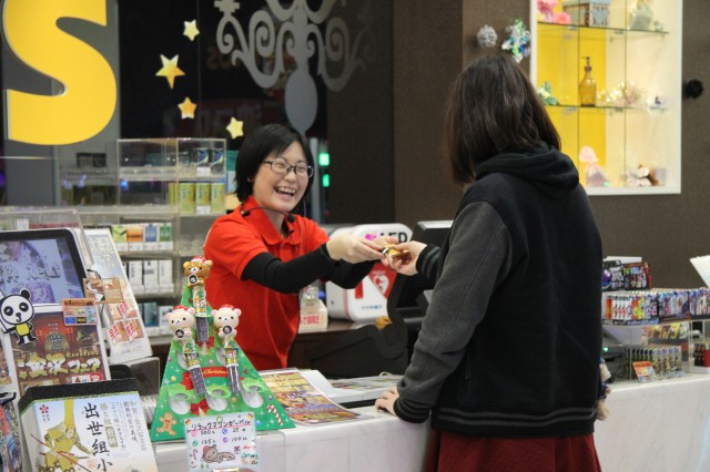 かわいい魔女たちが台の上や、賞品カウンター前で応援してくれてます。