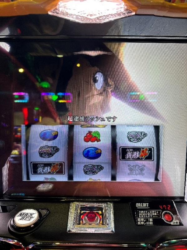で、夕方17時ぐらいに持ちコインが全部飲まれたんです。まあ、さすがにもういいかなぁ、と。赤7レインボーオーラで単発っていうオチもついたし。さすがにイラっとしたし。北斗の拳から席を立って、後ろにあったスマスロ『銭形』に何気なく目をやりました。