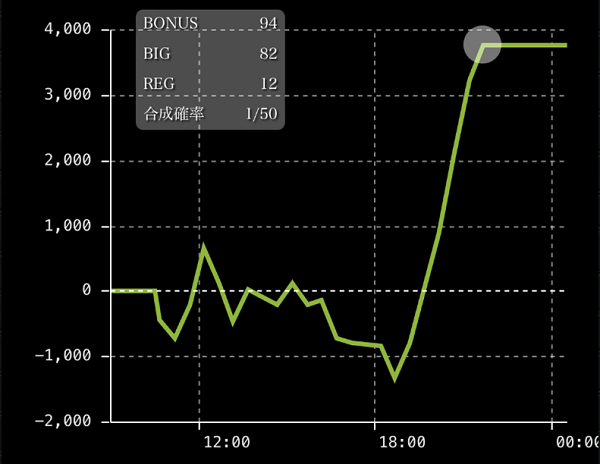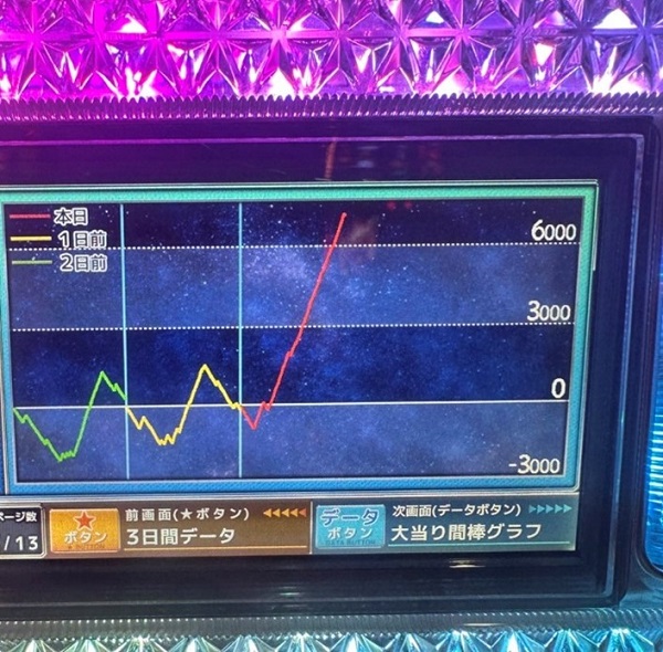 その台のデータです。一撃5000枚ですって。あっぶねぇ。もしも、あのスマスロ銭形を打たずにまっすぐ帰って、家でデータをチェックしていたら、激鬱になっていたトコロでした。閉店取り切れずまで連チャンしたみたいですね。ハハッ! 私なんてまだ昇天童貞だし、無想転生童貞だというのに! ハハッ!