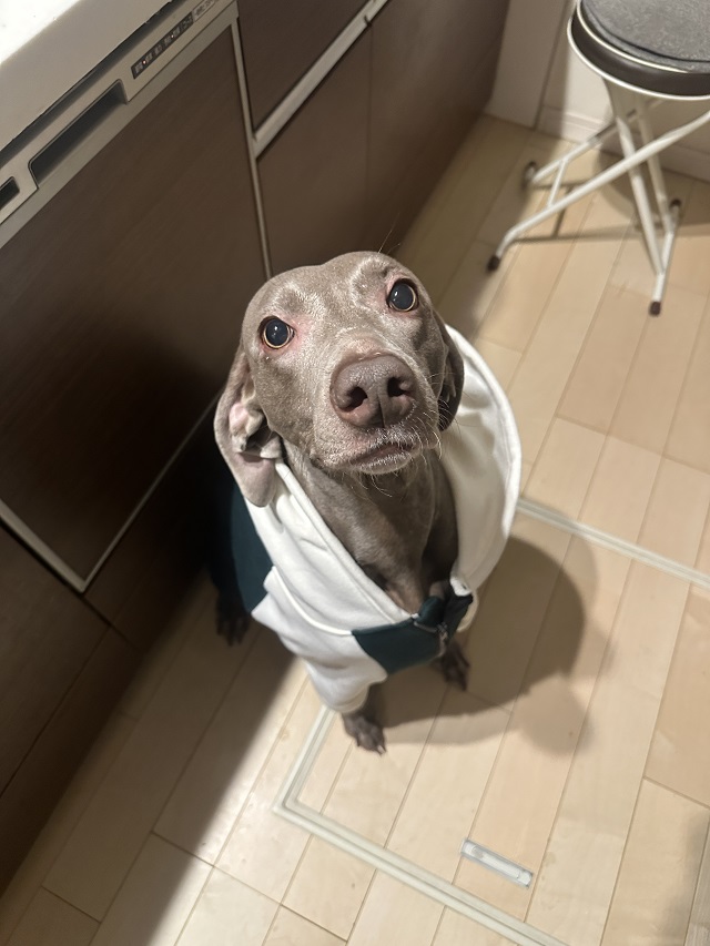 ハルも頭がすごく良かったけど、コハクはさらに頭がいいコです。家の鍵を開けてしまうレベルなので。ただ分離不安がヒドくて、なかなかお留守番ができません。来店の仕事で数日ぶりに家に帰ると、めちゃくちゃ吠えて怒ってきます。寂しかったんやぞ、と。いやちょっと待て、オマエは家族と一緒におったやん。寂しかったのは俺やぞ。吠えられるのはおかしいって。なあ?