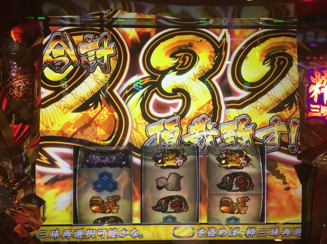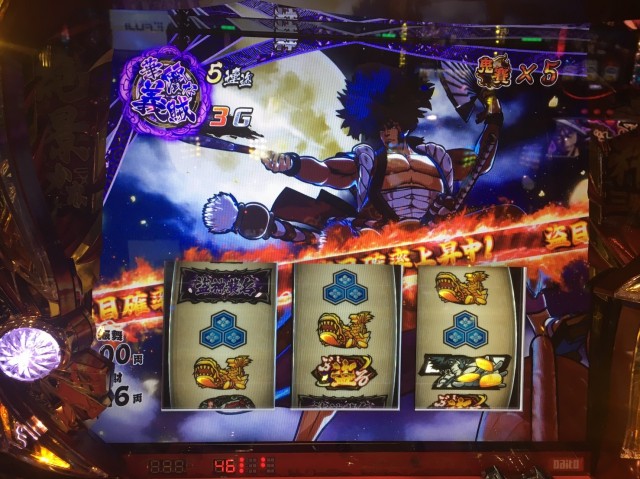 えーっ、中段チェリー⁉『盗忍!剛衛門』には中段チェリーはおろか、チェリ-すら無いはず。それなのに、左隣の台にはなぜか中段チェリーが出ています..........。何これ、世にも奇妙な物語?タモさん出てくる⁉