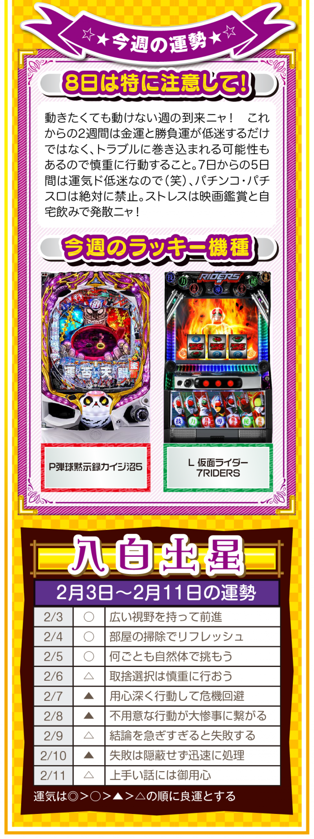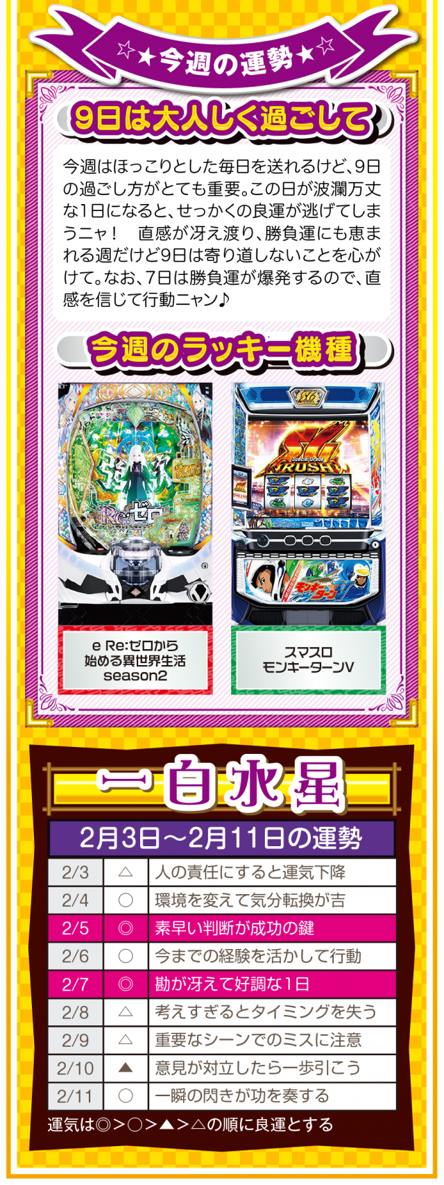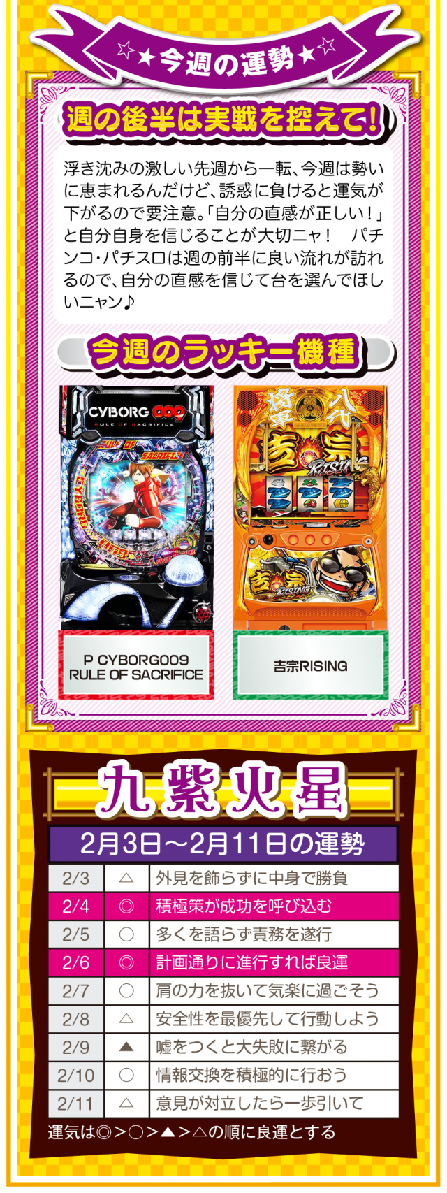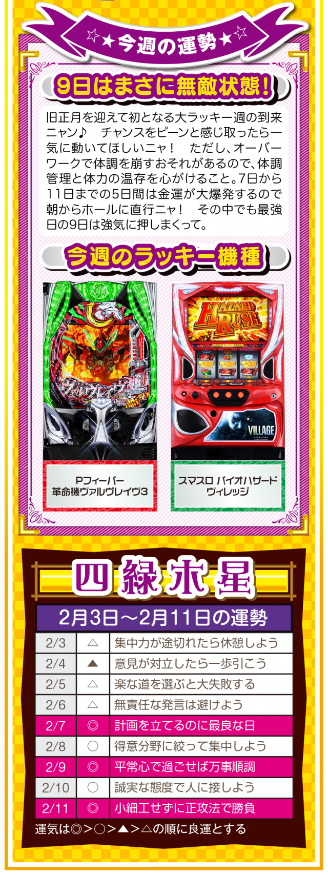 幸せな人は幸せを繋ぎ、幸せな人を中心にして「幸せの輪」ができることを覚えておいてほしいニャ! というわけで早速、2月5日から11日の1週間を鑑定ニャン(バレンタインを目前にしてアタフタしているフォー・チュンチュンが、オマケとして3日と4日の運勢も鑑定したニャン♡)!