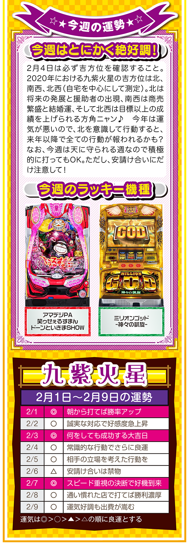 2019年の流れ・心境のまま2020年を迎えると大きく足もとをすくわれるので、九紫火星の人は例年以上に「吉方位」と「ラッキーをつかむ3ヵ条」を意識してほしいニャ!