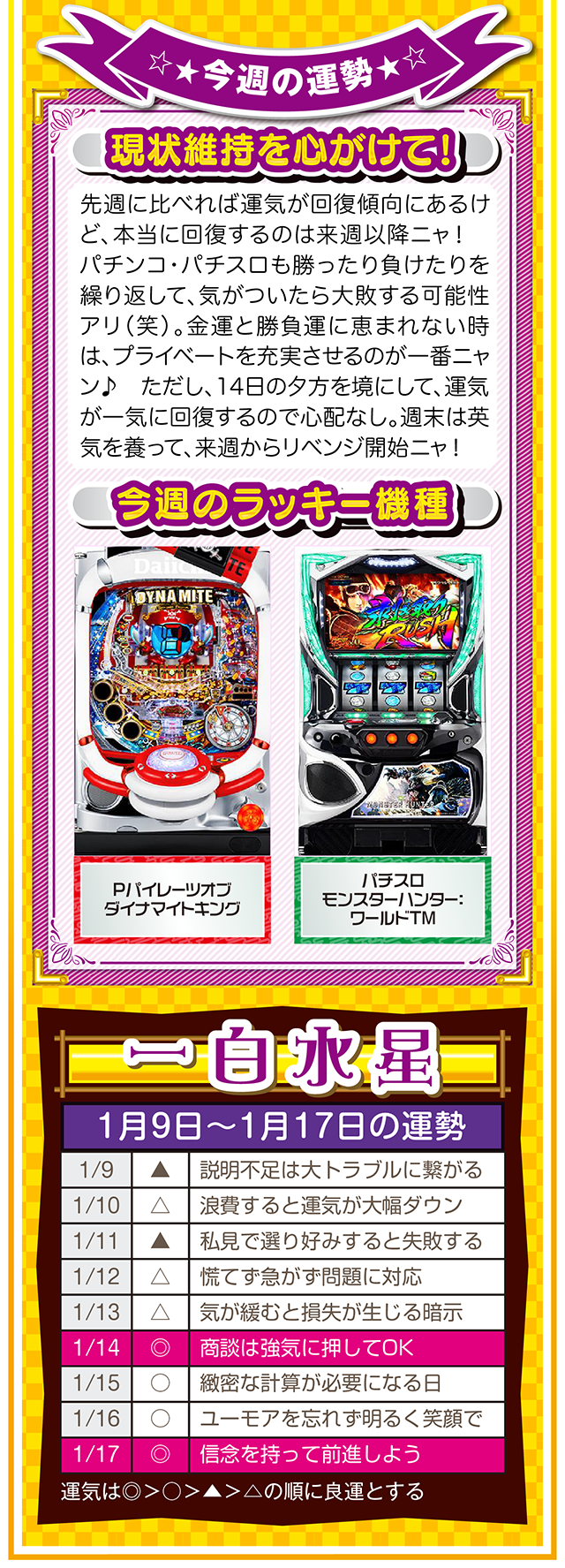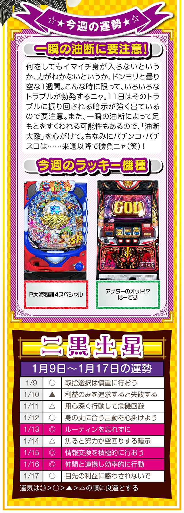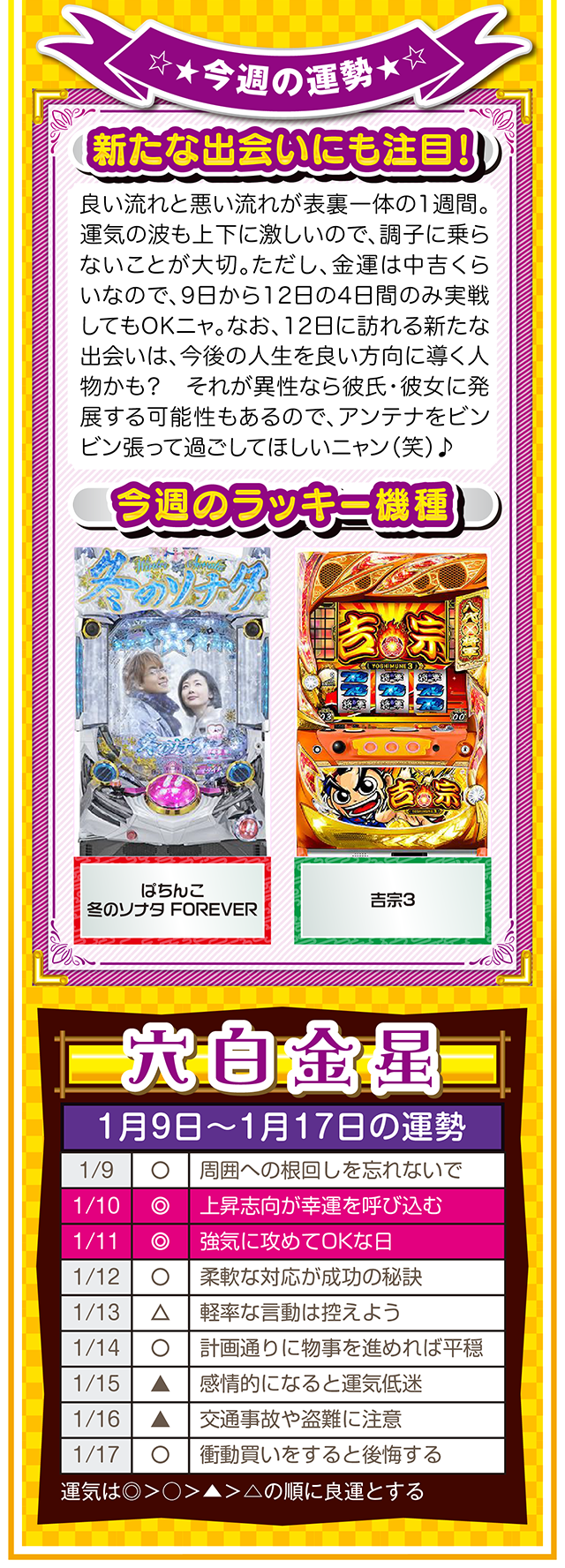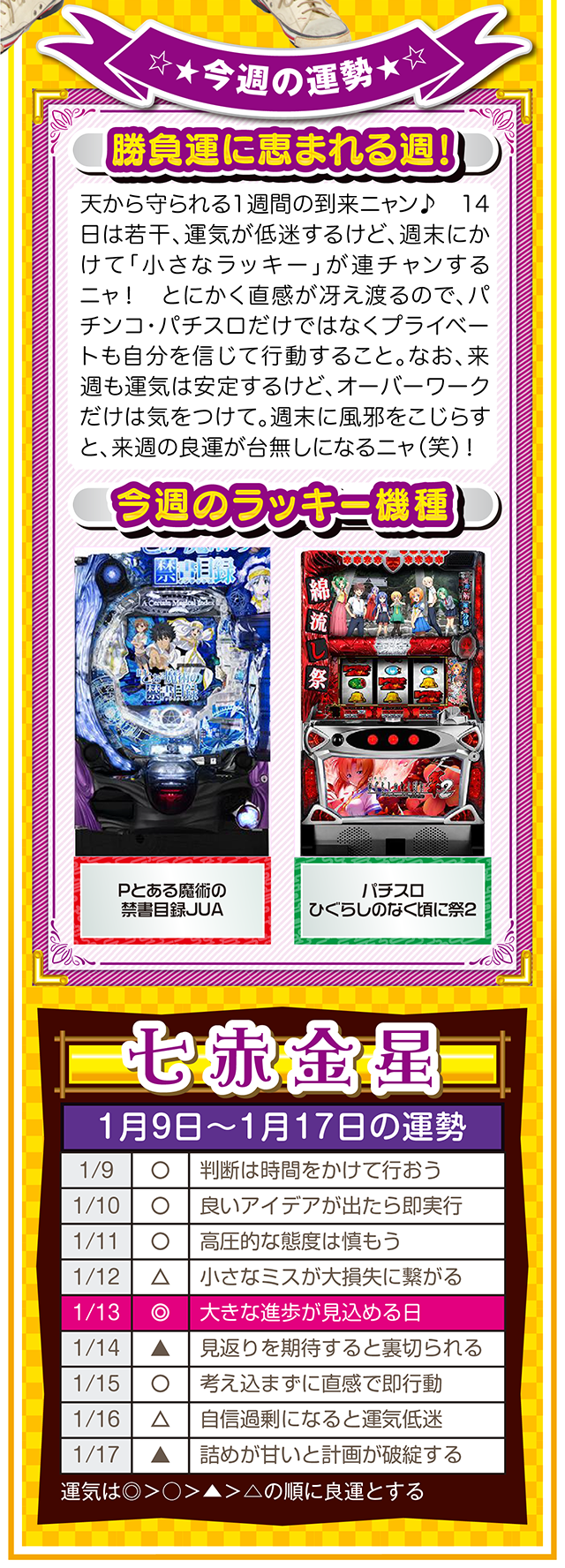 「困った時の神頼みという表現は不謹慎」という人もいるけど、神様は想像以上に懐が深い存在ということも忘れないでほしいニャン(ドシドシお願いしてOK!)……というわけで早速、1月11日から1月17日の1週間を鑑定ニャ(初詣のおみくじが「凶」で、さらに出会いに関しても「良い縁なし」と書かれていたフォー・チュンチュンが、オマケとして1月9日と10日の運勢も鑑定したニャン♡)!