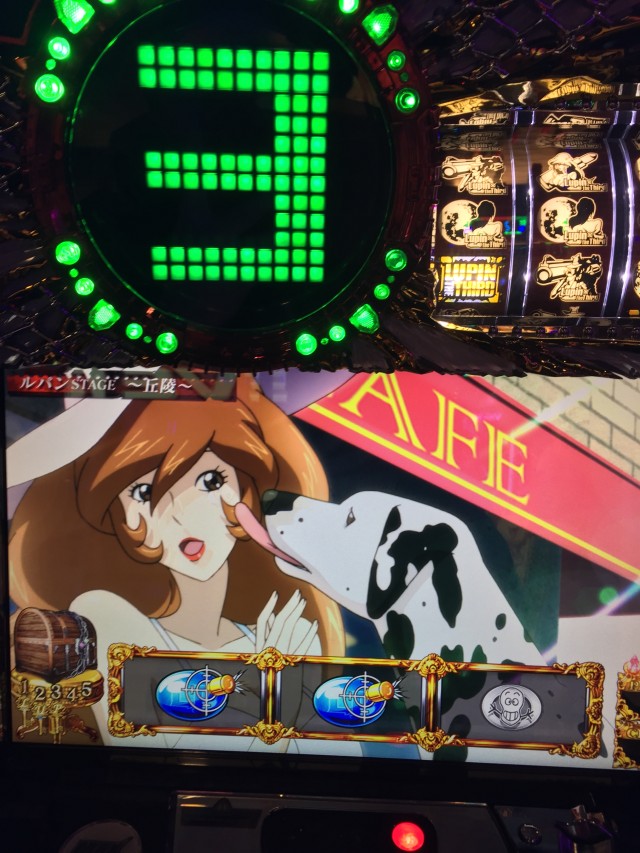 そこからルパンへ移動、朝一14Gで不二子ステージへ移動している台です。