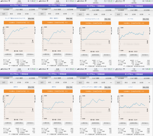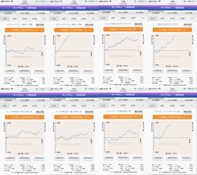 閉店後のデータはこんな感じ、当たり末尾的には3,8,9あたりが怪しい感じでしたね。フェイクや関係ない当たりなどもまじっているので良い意味で分からないという感じですねw