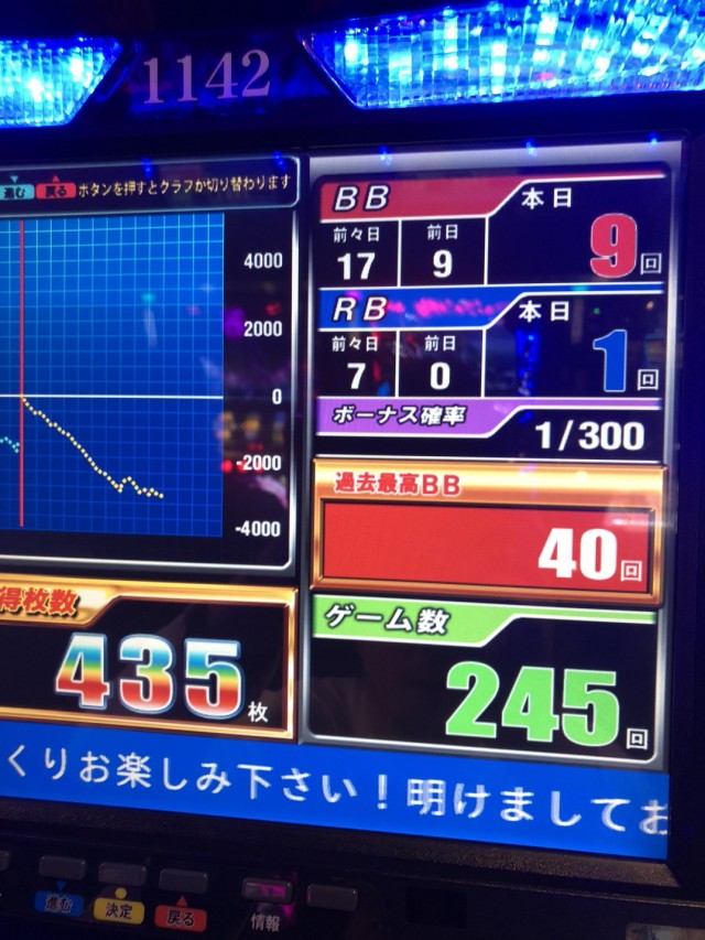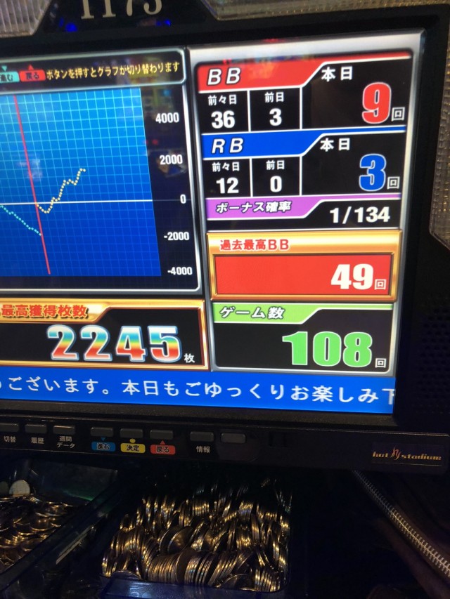 グラフは非常によく、小役も落ちてはいるのですがモードの動きを個人的には番長を判別する上では最優先としているのでヤメてみました。