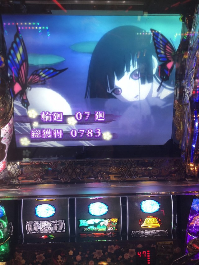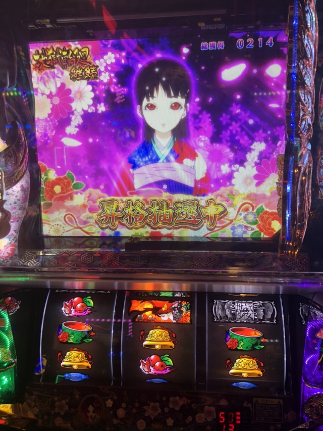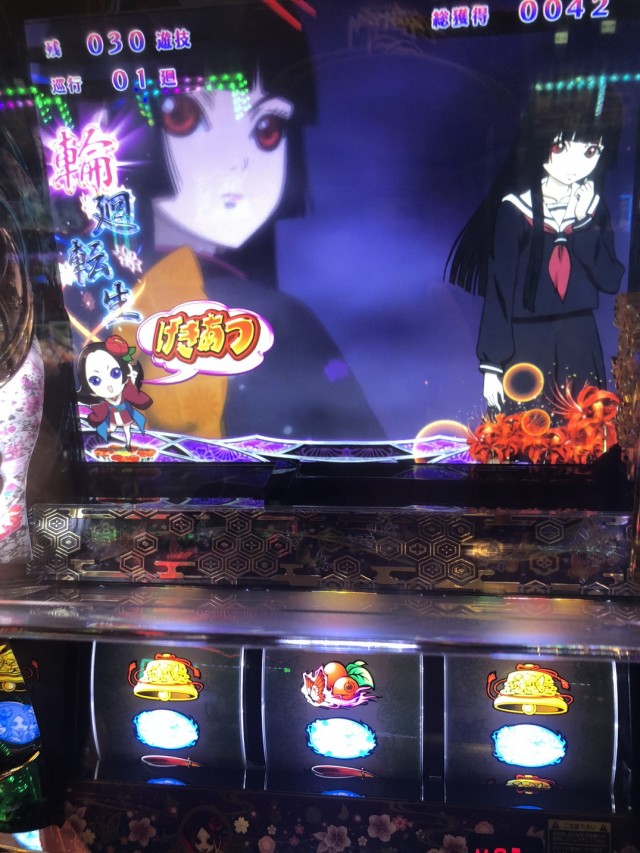 入店してみると天草先生はジャグラーへ、僕はというとバラエティも取れずウロウロし3台島の地獄少女を確保しスタート