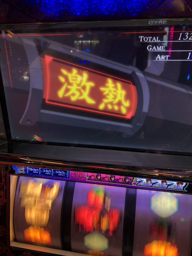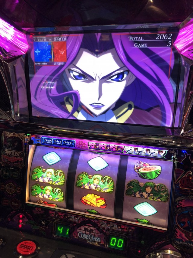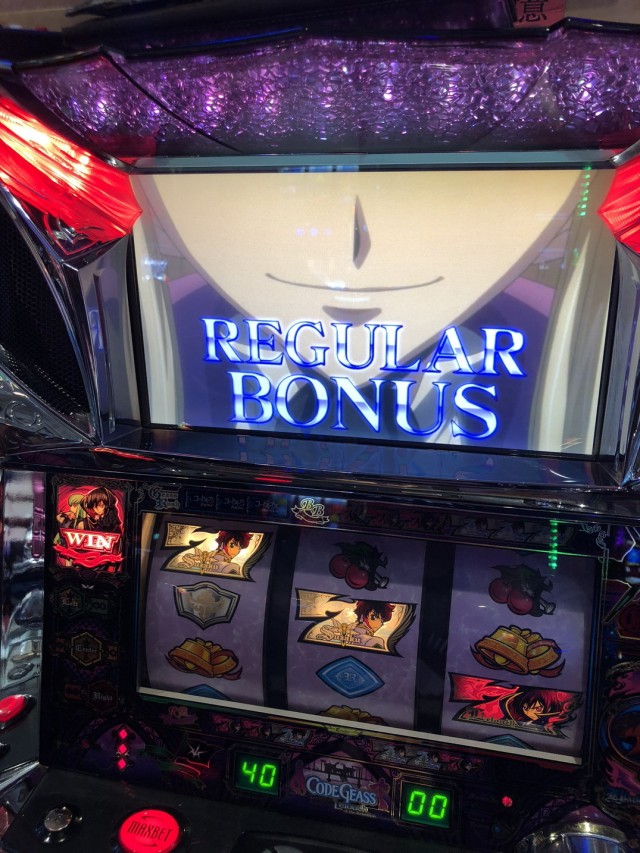 弱チェリーに続いてチャンス目からの特定ボーナスですね、前にも書いたと思いますがギアスは特定ボーナスに大き目な設定差があるので引いておきたいものでもあります。※写メは弱チェRB