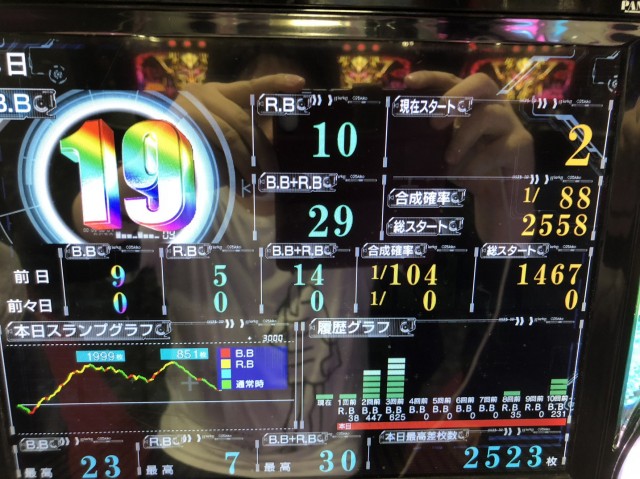 ジャグラーは毎回昼過ぎからの稼動となり回転数が足りない事もあるのですが