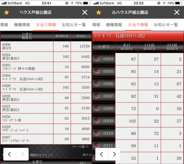 閉店データとしてギアスの全体データとランキングはこんな感じ
