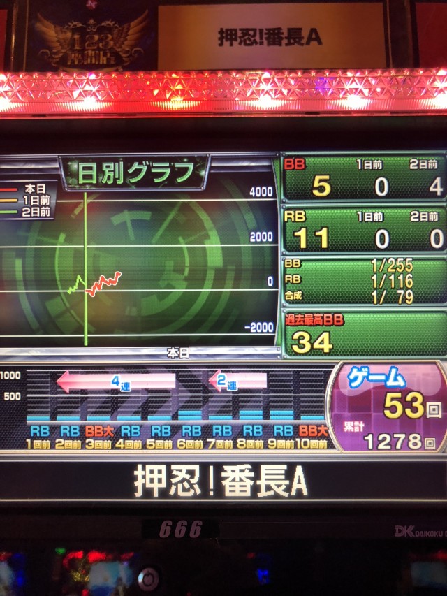 1発目のチャンス目からリーチ目出て初代番長行き当たり!演出見ればよかった←