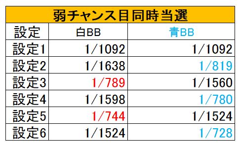 高確弱チャンス目からCZへ当選、各レア役からのCZ当選に設定差があるのでプラス要素ですな。