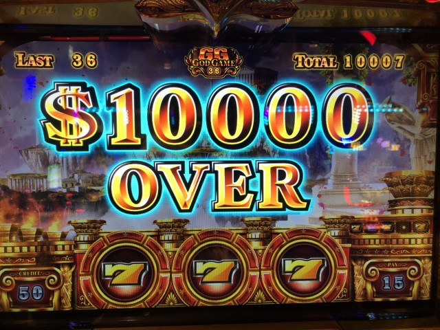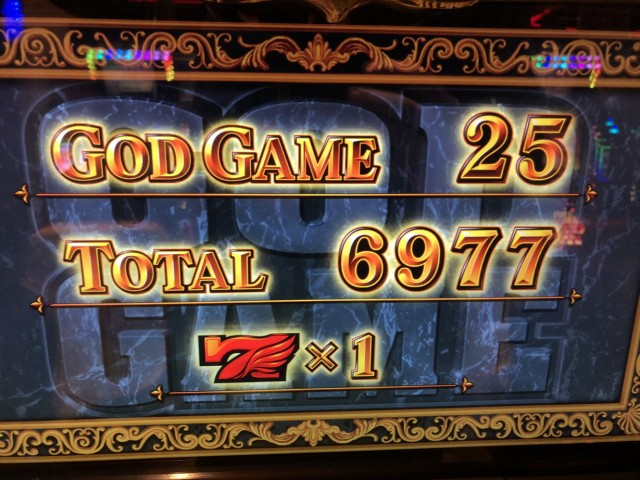 GODは0、赤7も1回揃っただけでまさか一撃万枚越えるとは…