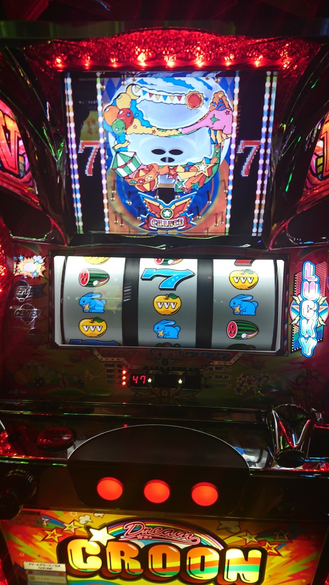 基本的に左右のドットが動くとクルーンチャンス抽選のチャンスとなってまして、全小役で抽選自体はしてるのでまずドットが動くだけでちょっと期待が持てる。
