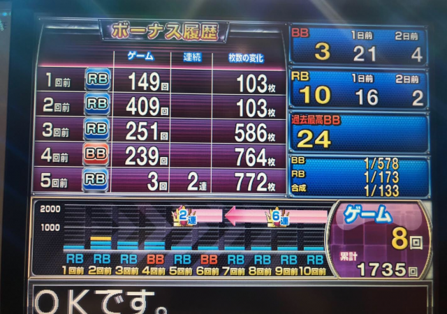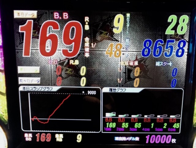16時頃に、自分の台の挙動も悪くなくて、高設定を確信。