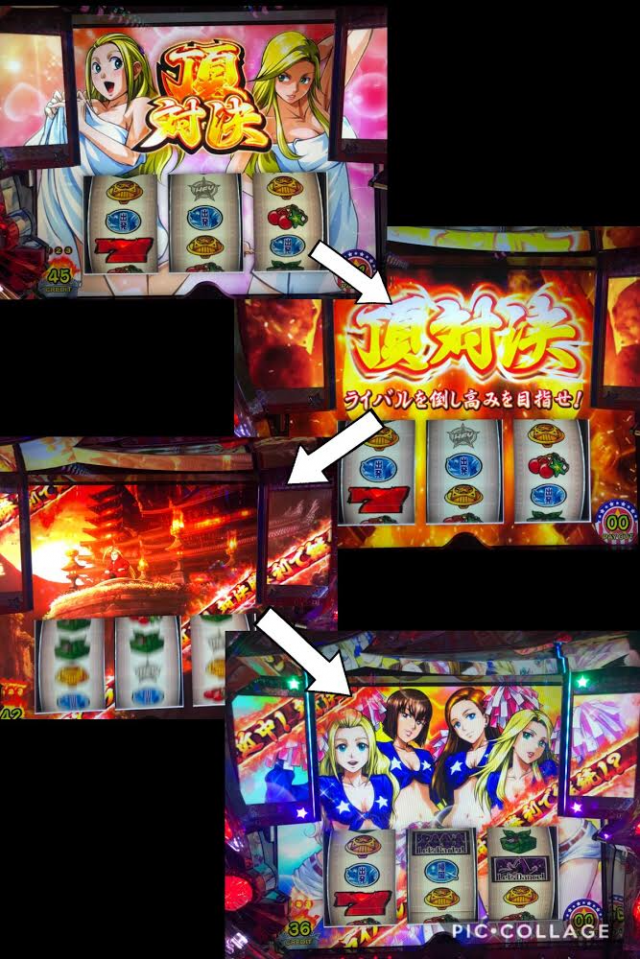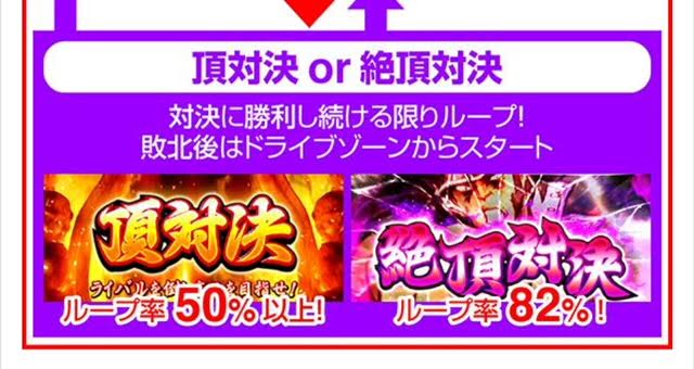 頂対決は、轟大寺経由で対決に発展。対決に勝てばATに突入し、勝利し続ける限りループします。
