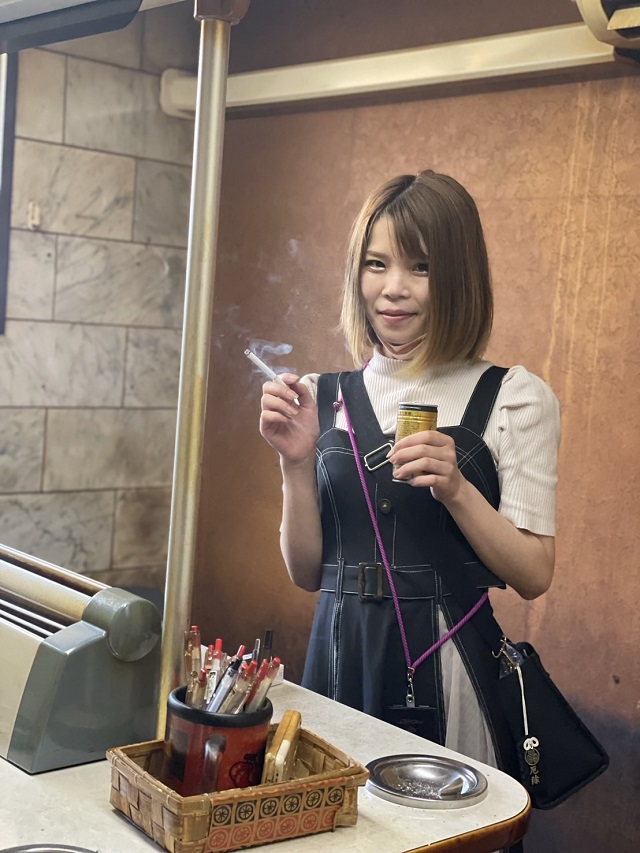 打ち合わせや開店待ちのために何度か利用したことがあるものの最後に行ったのは数年前。電子タバコへの移行を拒むおじさんたちがスポーツ新聞を読みながらまったりする場所という印象だったので、店内に入ってまず客層の若さに面食らい、さらにその大半が紙タバコを吸っていることにも驚きました。え? 今の若者ってタバコ吸わないんじゃないの? コスパとかタイパとか気にしてたら吸えないよね? と。