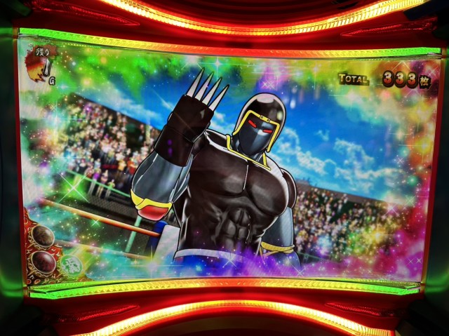 上位ATはあっさり終了して300枚ぐらいしか増えなかった。さらに引き戻しゾーンでは悪魔将軍バトルにすら突入せず通常時に戻った。