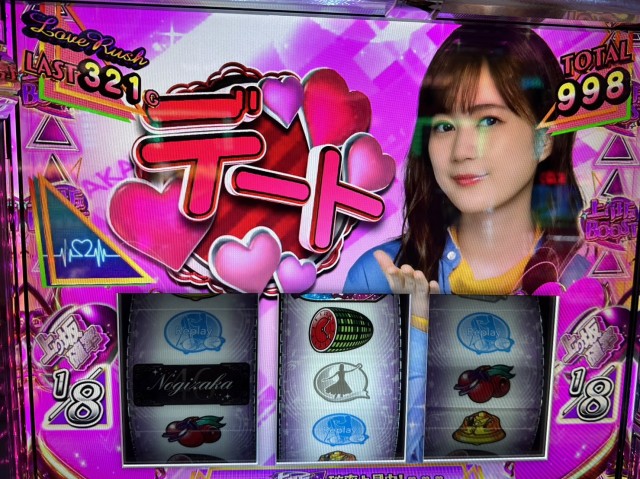 AT中はデート(CZ)に成功すると、上乗せor特化ゾーン確定なのだが(演出モードがラブラッシュの場合)、内なるデートの才能が目覚めたのかイチャイチャパラダイス。