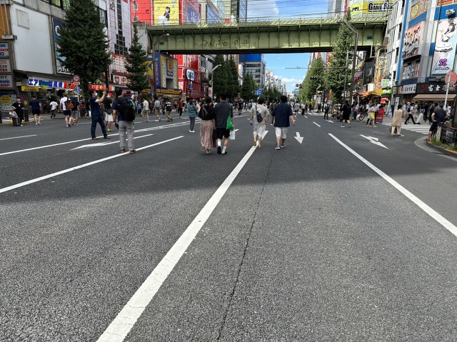 日曜日だったこともあり、秋葉原は人人人と賑やか。よく見てみれば外国人の数も多い。歩行者天国も再開していて、
