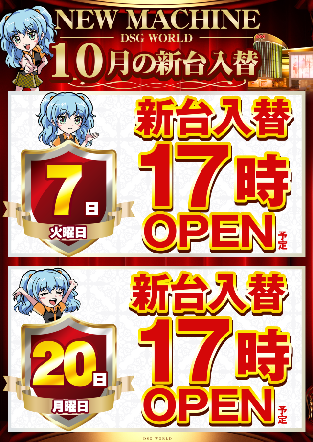 AM9:40より抽選開始(新台入替17時開店時は16時40分) |