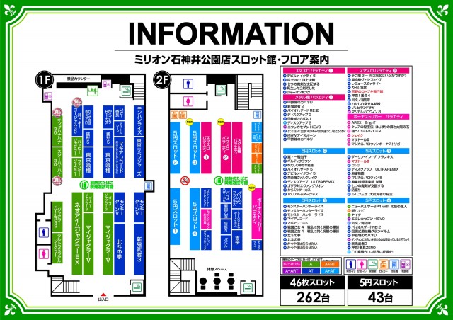 10:00-22:45 会員カードをご提示頂くと、翌日以降の交換に限り、22:50まで延長遊技が可能 |