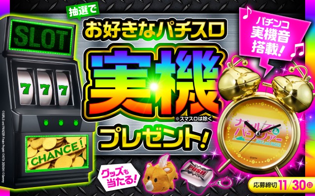 ご好評をいただいております、パチスロ実機のプレゼントはもちろん継続! さらに人気機種関連グッズもあります。ぜひゲットしてパチンコ・パチスロライフをよりお楽しみください!