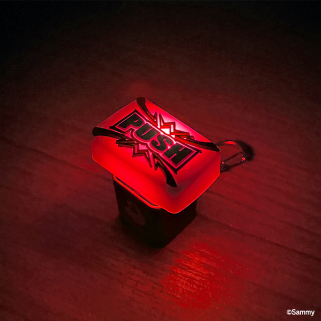 ご覧の通りリアルなPUSHボタンが付いたサウンドキーホルダーで、ポチッと押すとお馴染みのサウンドと共に光ります。